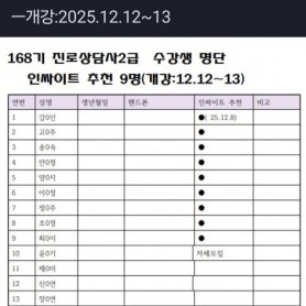 168기 진로상담사 자격과전정신청 명단(25.12.8현재)